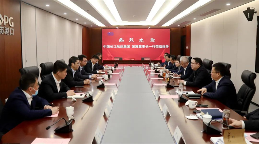 陈明对张翼董事长一行的到来表示欢迎。他指出,长航集团与江苏省港口集团有着深厚的合作基础,双方拥有共同的战略目标与发展愿景。下一步,要深入学习贯彻党的二十大精神,以“党建”促“共建”,以“共建”促发展,要全面深化双方的战略合作关系,发掘双方潜在的合作机会,以集团层面的合作为战略引领,围绕主业延伸拓展,将港航产业链做强做优做长,真正将战略合作协议落到实处,齐心协作、统筹谋划,共同推动南京港高质量发展,服务建设南京江海联运航运物流枢纽。