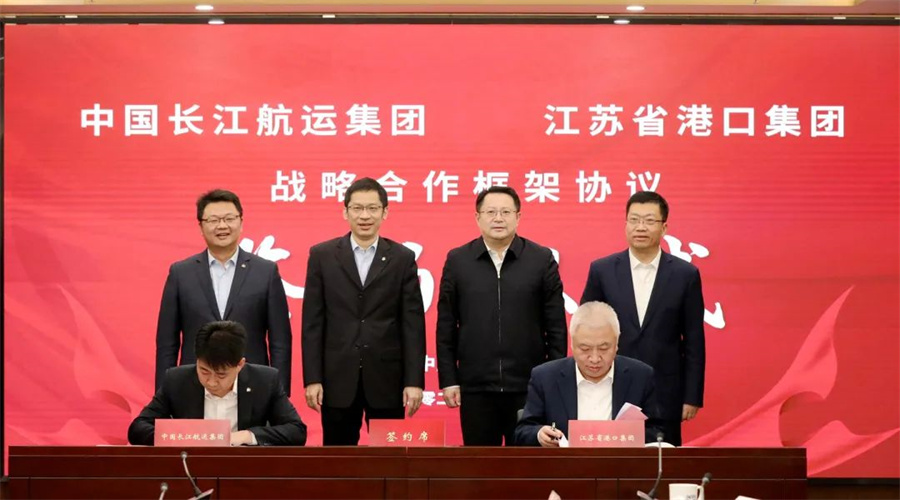 1月4日,长航集团与江苏省港口集团签署战略合作框架协议。长航集团党委书记、董事长张翼,江苏省港口集团党委书记、董事长陈明出席签约仪式并致辞。签约仪式由江苏省港口集团总经理关永健主持。长航集团副总经理张雅出席仪式,副总经理李增忠,江苏省港口集团副总经理唐洪生分别代表双方签署战略合作框架协议。