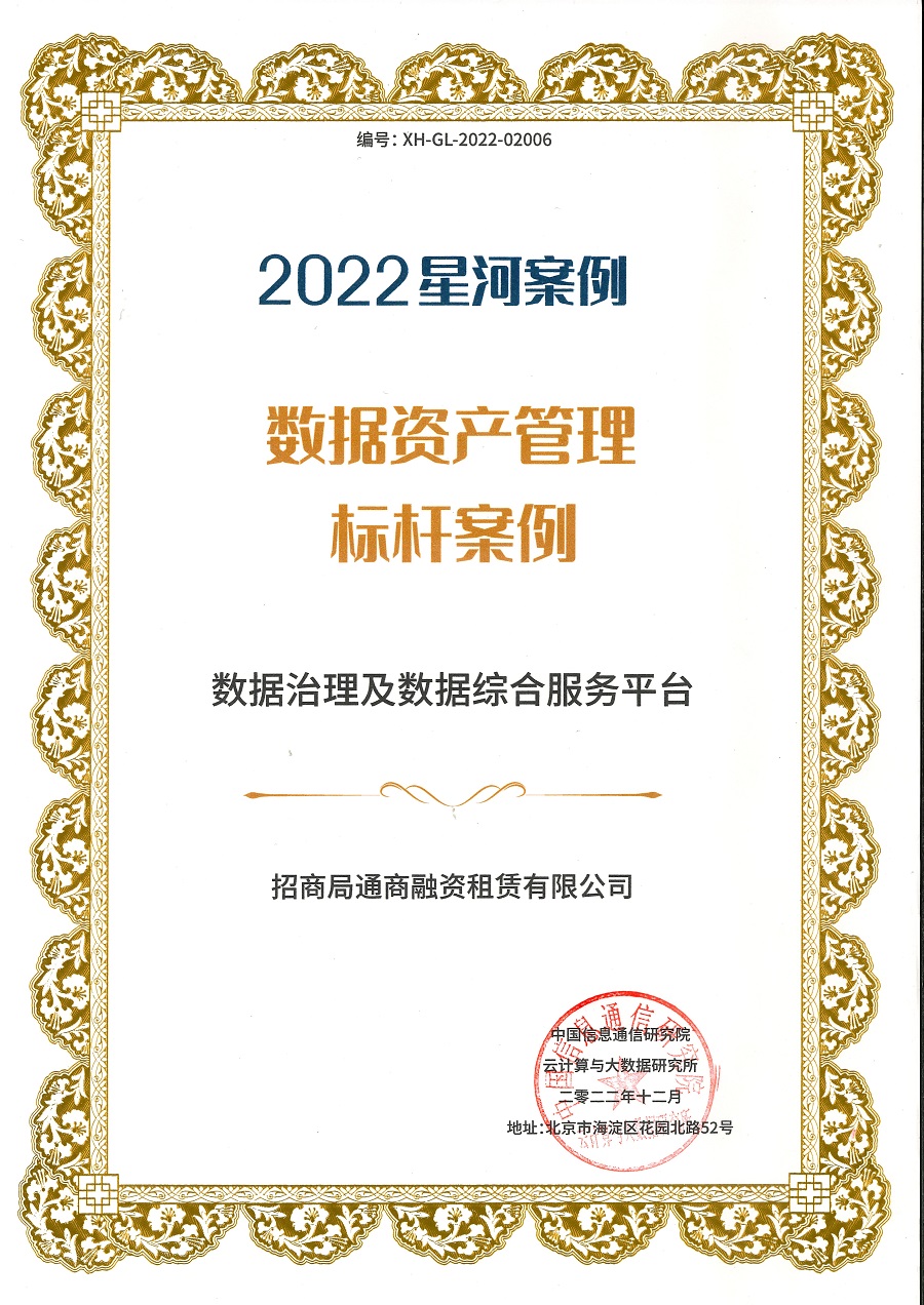 1月4日,招商租赁凭借“数据治理及数据综合管理平台”荣获2022年度大数据“星河(Galaxy)”奖——数据资产管理标杆案例。本次评选由中国信息通信研究院、中国通信标准化协会指导、中国通信标准化协会大数据技术标准推进委员会(CCSA TC601)主办,在第五届数据资产管理大会上隆重揭晓。