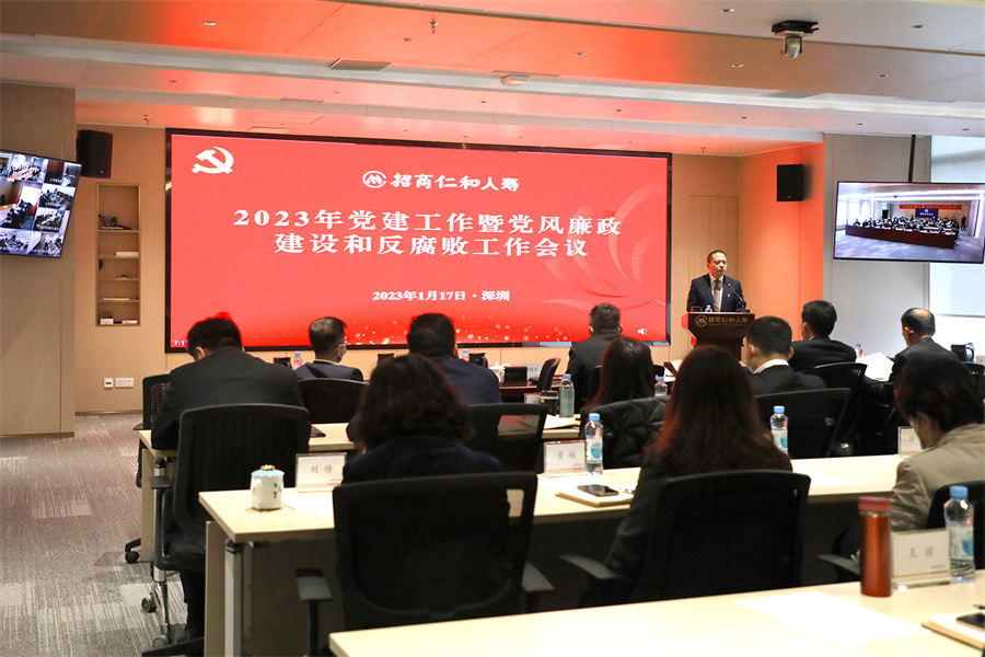 1月17日,招商仁和人寿2023年度工作会议在深圳前海总部职场召开。上午会议传达招商局集团2023年度工作会议主要精神,总结2022年工作、分析研判形势、部署2023年工作,下午召开公司党建工作暨党风廉政建设和反腐败工作会议。