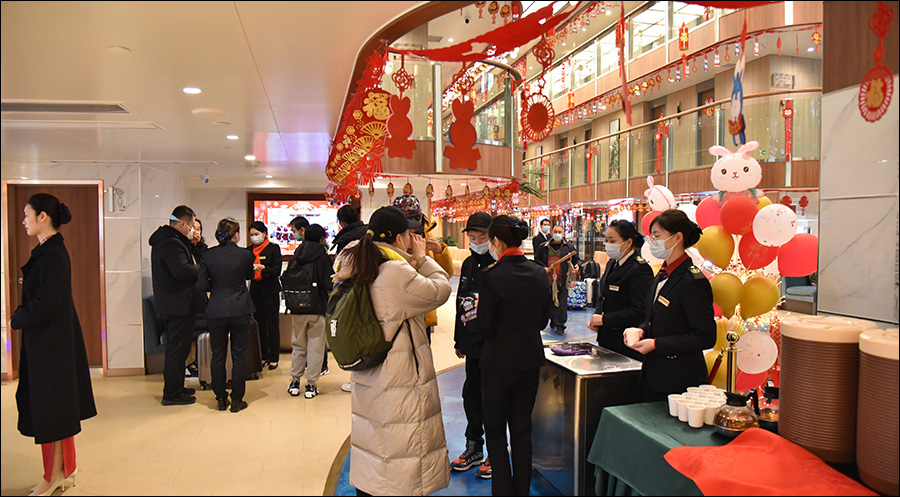 长航集团是长江游轮旅游的开创者,旗下“长江系列”游轮被誉为“国宾船队”。据该公司相关负责人介绍,长江游轮旅游受新冠疫情影响,三年来各个公司航班开行时断时续。“长江叁号”受疫情影响2022年开航13个航次,暑期推出的高端游轮产品受到市场热捧,负载率达到76.04%。此次春节航班,客源主要来自浙江、湖北、辽宁、江苏等地,多以家庭组团方式出行,负载率达到100%。游客中有95岁高年龄的老人,也有2周岁的小朋友。船上为做好游客接待和保护工作,增派了随船医生,备足了防疫物资和药品;针对少年儿童策划安排了虎口脱险、猜灯谜、妈妈的爱、心有灵犀、棒棒乐、摇摇乐等趣味活动。航班将经停丰都、白帝城、小三峡、三峡大坝等三峡沿线所有国家4A、5A级景区。