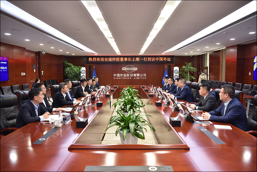 中国外运总经理办公室主任辛允、产品通道部总经理高春明、战略客户部负责人刘珀均、创新研发部总经理李灏源、中国船代总经理卞伟风以及安通控股相关管理人员参加会议。(中国外运 供稿)