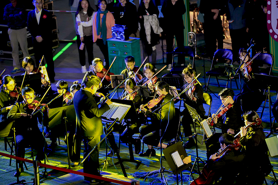 落日后户外虽仍有丝丝凉意,集市现场却热情浓烈。“手撕椒麻鸡”老板撕到手软,预先备好的菜品不到一小时就已售空;“养猪大户”售卖天使翅膀气球近300支,老板边充气边高呼“脑缺氧”;渐冻小姐姐美丽依旧,带着病友小姐妹来到现场,互相加油;最萌的猫咖小舍成了吸猫一族的撸猫圣地……本次集市活动特邀摇摆舞团进驻现场演绎,复古、浓烈的查尔斯顿舞,将浪漫氛围直接拉至满格,矜持的观众由羞涩到主动,跟随音乐的节奏欢乐摇摆。芯云谷入园机构-来自台湾的仰声乐团也为大家带来了精彩的春田花花音乐会,数百名观众自发围坐台前观看表演,曲曲经典勾起了观众的回忆。