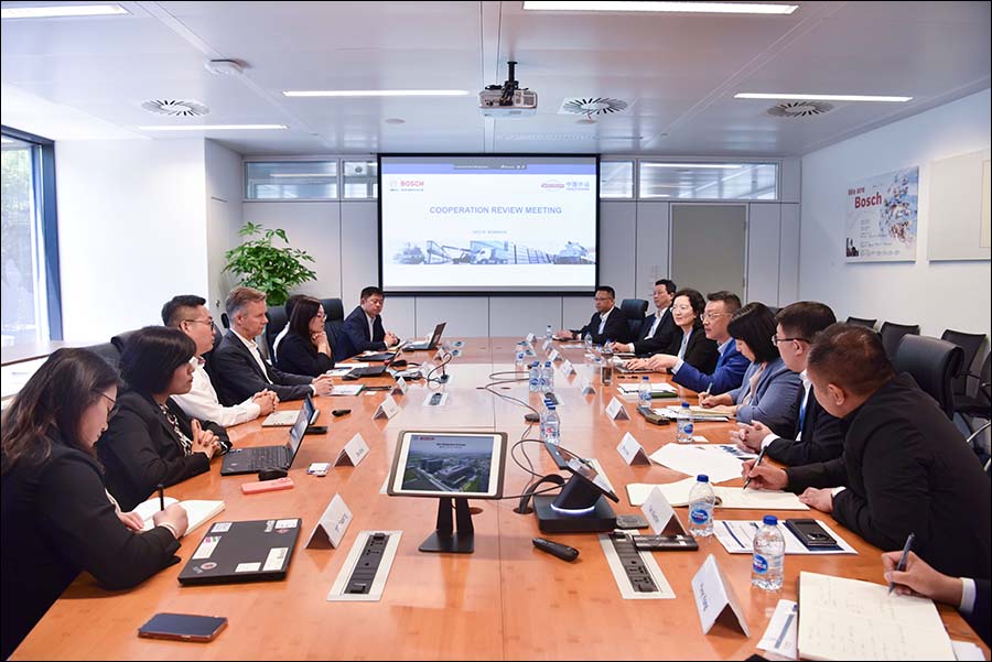 5月23日下午,中国外运总经理宋嵘在博世上海总部拜访了博世全球商业服务部亚太区(以下简称“博世亚太”)总裁Sommerhaeuser博士,双方回顾了合作情况并就进一步深化合作进行了交流。
