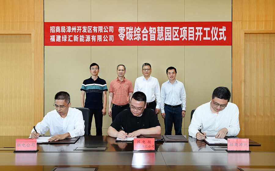 6月1日,招商漳州与福建绿汇新能源有限公司(下称“国电投福建绿汇公司”)在招商局创业广场举行漳州开发区“综合智慧零碳园区”首期项目开工暨签约仪式。招商漳州副总经理韩春生、李弘远,国电投集团甘肃新能源有限公司副总经理江建平出席仪式并见证签约。