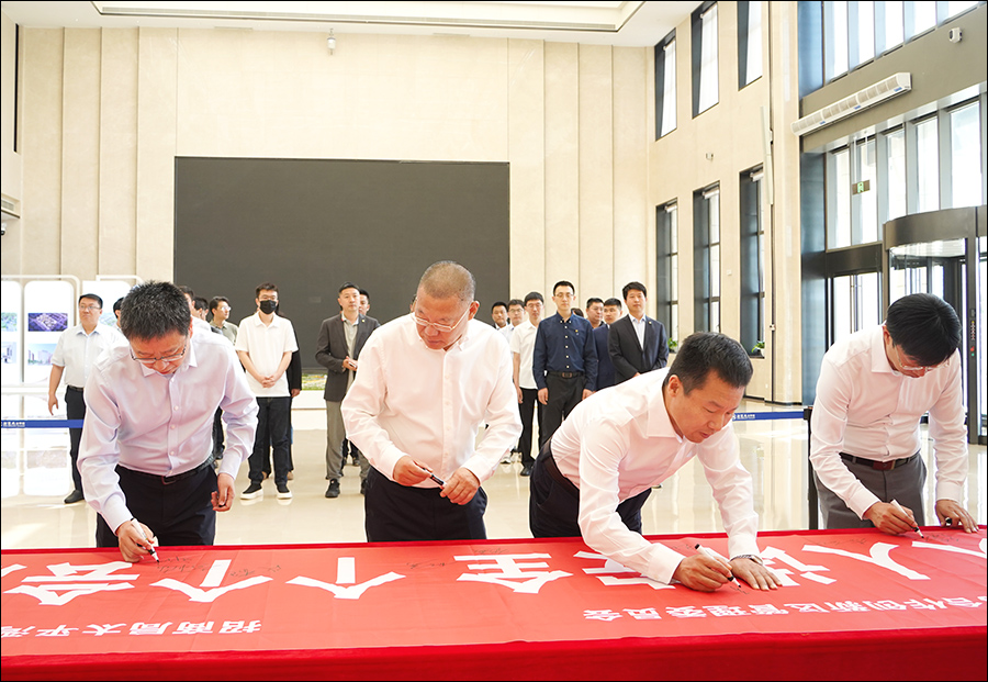 随后,与会人员在“人人讲安全 个个会应急”主题横幅上签下姓名。
