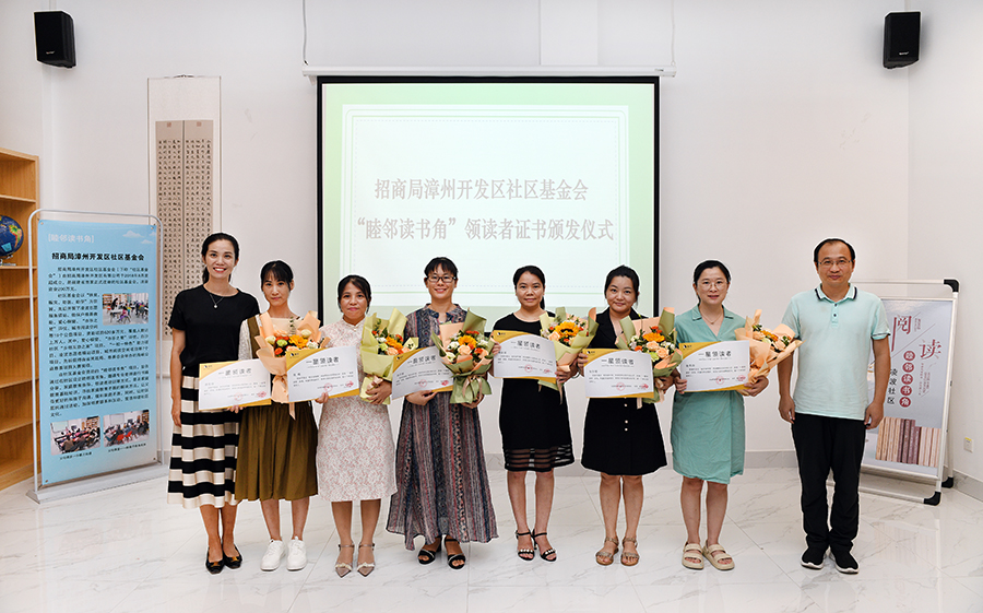 7月22日下午,招商局漳州开发区社区基金会在凌波社区服务中心“睦邻读书角”项目活动现场举办图书捐赠活动。基金会秘书长许晓晖、漳州开发区凌波社区居委会主任江玉惠、帆书漳州运营中心负责人张夏艳、社区居民60多人参加了活动。