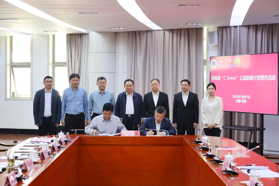 10月31日,招商局C Green公益助教计划签约仪式在安徽师范大学举行。招商公路党委书记、董事长白景涛,党委委员、副总经理吴新华,安徽师范大学党委书记胡朝荣、党委副书记周旭,校党委常委、副校长高峰出席活动。活动由周旭主持。