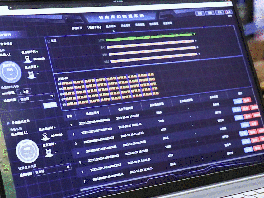 在性能方面,“小悠盘”可以实现11米高度的货品盘点,信息识读率≥99.9%,识别准确率100%,最大盘点效率1500托/小时,续航8小时以上,支持预约盘点、动态盘点、指定库位盘点、指定SKU盘点、黑灯盘点、窄巷道盘点等多种盘点模式。“小悠盘”盘点过程中可实现360°感知避障以及电池温度实时监控,出现异常后以短信形式自动通知到管理人员,实现快速应急处理。