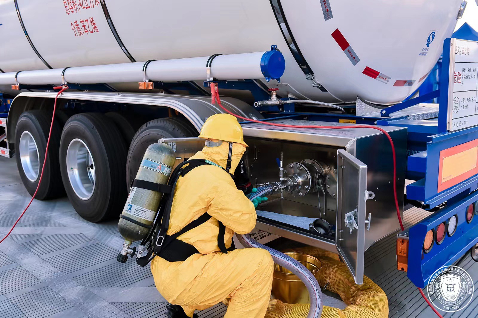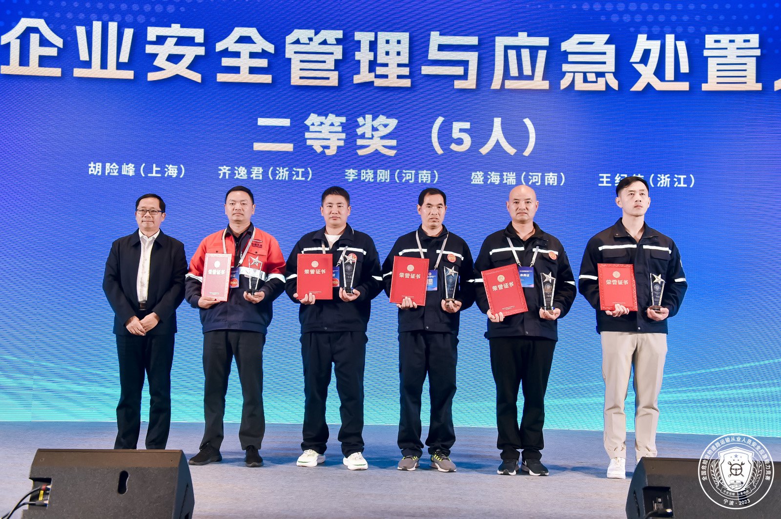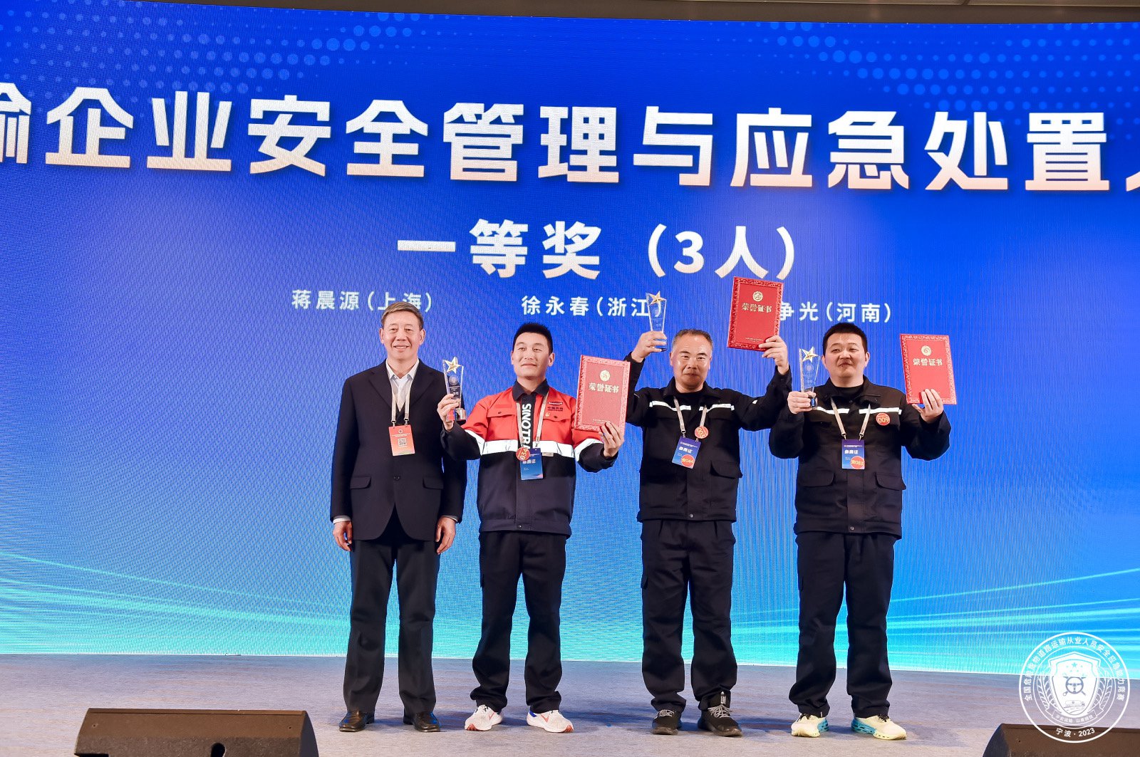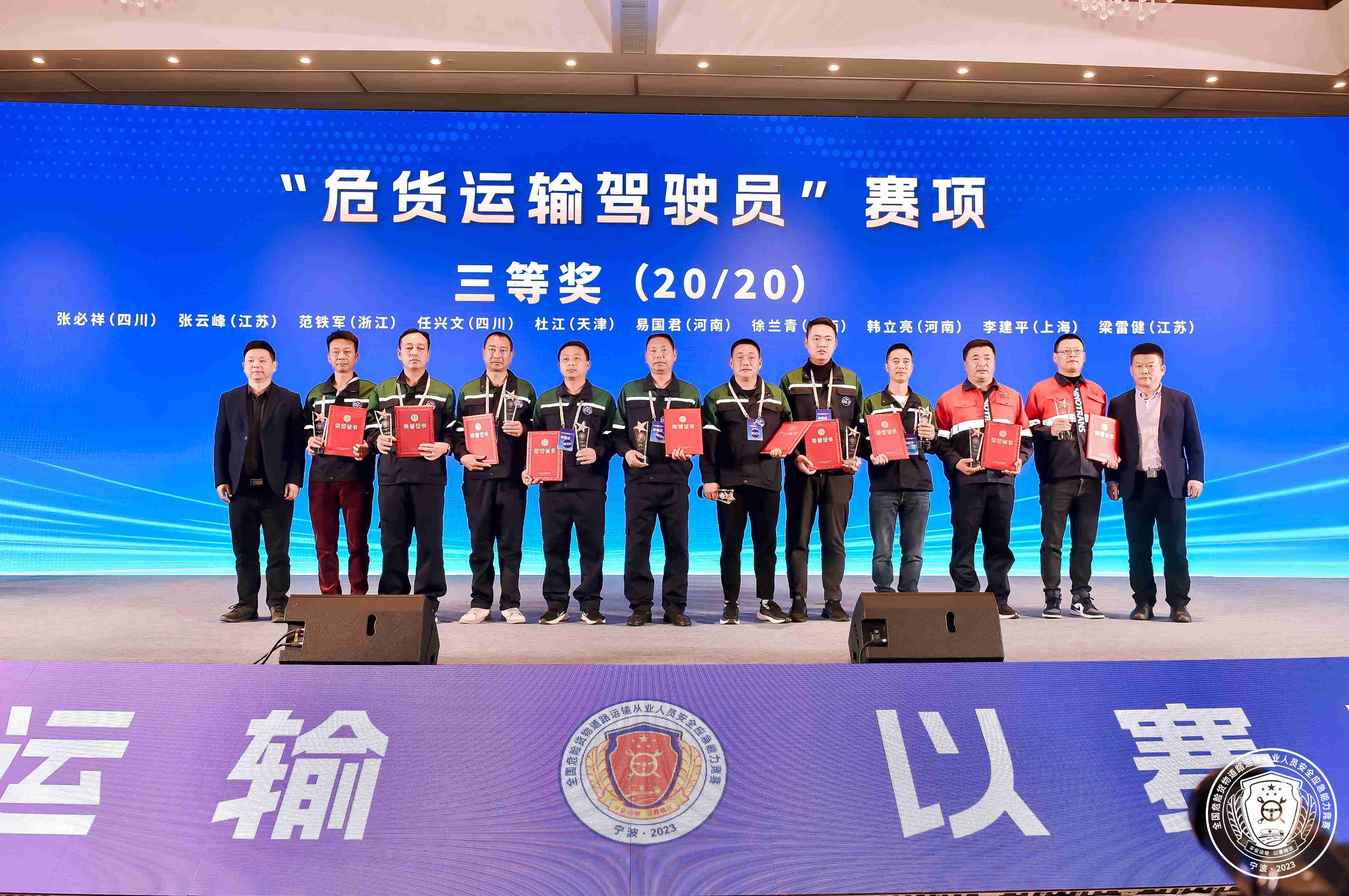 近日,2023年全国危险货物道路运输从业人员安全应急能力竞赛(决赛)在浙江省宁波市举行,来自全国共计176名选手参加比赛。来自中国外运所属外运化工的7名参赛选手在三项竞赛科目中分别斩获了1个一等奖、1个二等奖和2个三等奖共四项荣誉。此外,外运化工安全专家组的应急专家受邀作为此次大赛技术专家组组长指导竞赛。