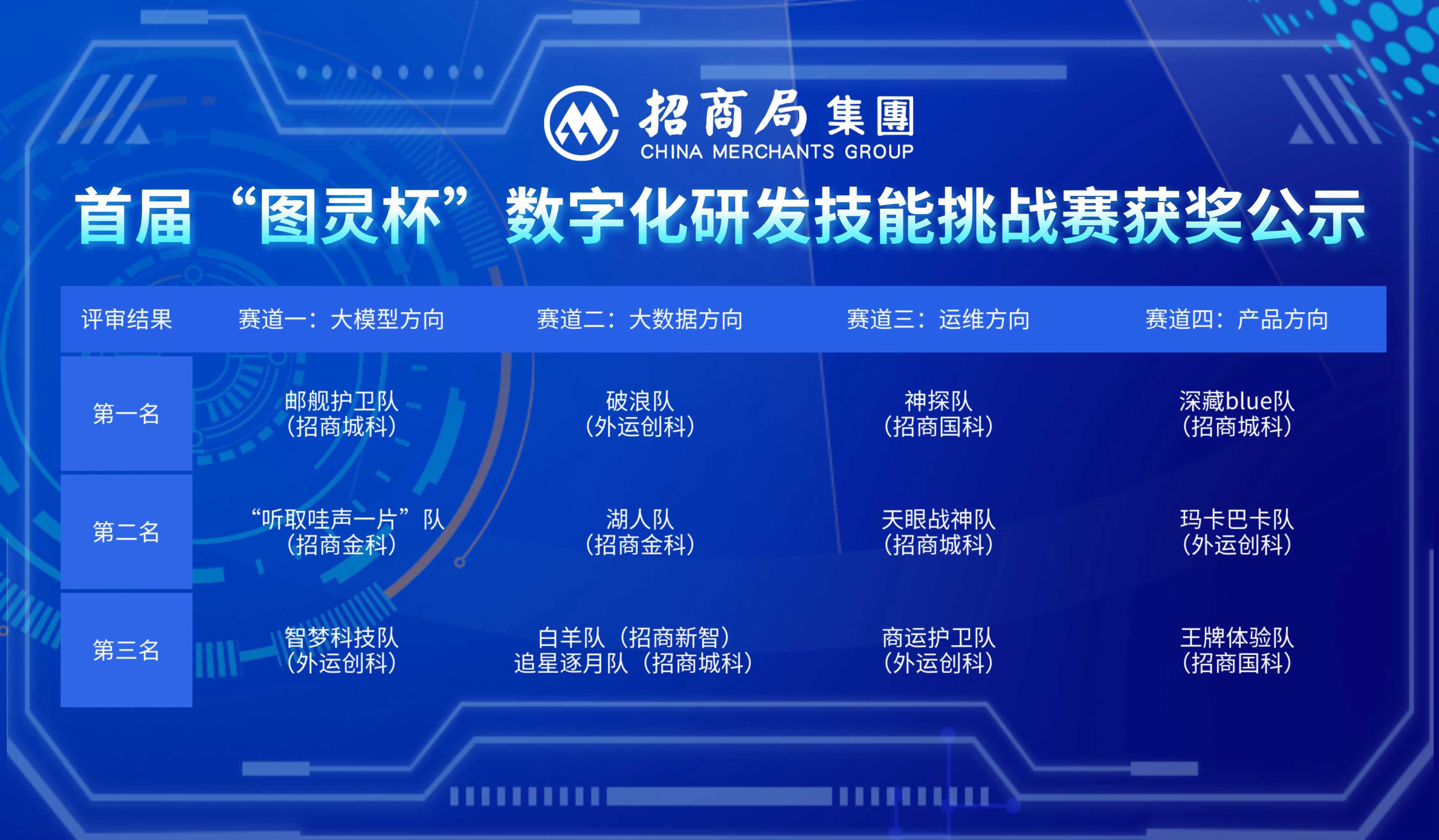 近期,由集团数字化中心主办,招商局金融科技有限公司(以下简称“招商金科”)和中国外运所属中外运创新科技有限公司(以下简称“外运创科”)共同承办的首届“图灵杯”数字化研发技能大赛圆满落下帷幕。来自招商工业、招商金科、招商城科、招商国科、外运创科、招商新智、大连港隆、大连DPN、营口港信等单位共27支队伍172人参加比赛。本次大赛为招商局集团体系内数字化研发人员提供了一个互相切磋技艺、提升团队凝聚力的平台,也为招商局数字化转型提供更多的创新思路与方法。