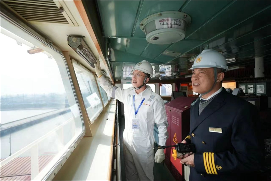 2月8日,招商轮船总经理王永新带队在上海外高桥四期码头对“中外运新港”轮开展节前安全检查并慰问船员。