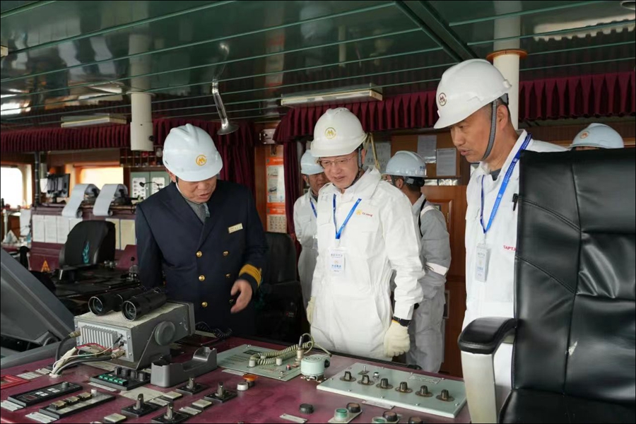 招商轮船安全监督管理部相关负责人,外运集运相关人员参加检查慰问。(招商轮船 供稿)