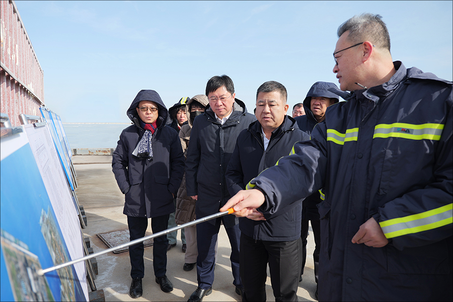 2月26日,大连市副市长楚天运一行赴大连太平湾合作创新区,就太平湾开发建设相关工作进行调研。市政府口岸办主任贺楠,市交通运输局副局长王黎黎,瓦房店市委常委、常务副市长宋玉章,太平湾合作创新区党委书记、管委会主任薛雁翔,招商局太平湾党委书记、总经理胡勇,辽港集团副总经理曹应峰参加调研。