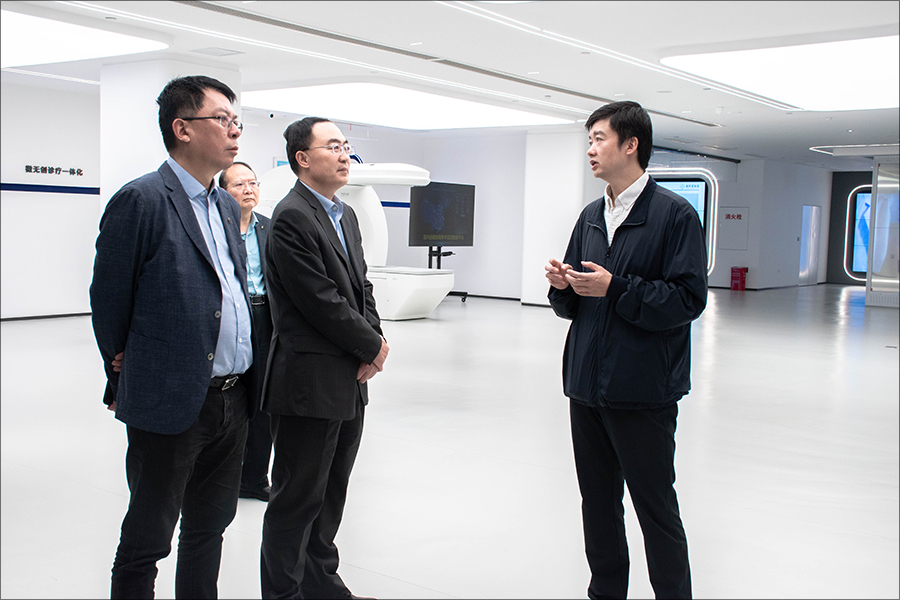 随后,张日忠一行拜访了西部科学城(重庆)金凤实验室,听取了实验室基本情况、功能布局、平台团队、创新成果等汇报,详细了解了实验室病理表型组科学计划、构建精准诊断产业创新策源地、一体化设计、多元投入机制等情况。张日忠表示,金凤实验室在推动精准医疗领域的发展中扮演着重要角色,希望实验室能够继续保持创新精神,加强科研成果转化,在未来双方能够找准契入点加强合作交流。